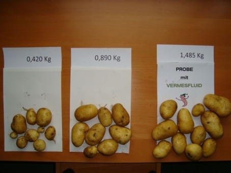 The principle of VERMESFLUID effect consists in ability of stimulating matters contained in it to increase utilisation and acceptability of nutrition matters from the earth. VERMESFLUID is a result of long-term development and practical application not only in agricultural large-scale production, but also by smaller farmers and in a hobby gardens. Very good effects on yield and quality of the plants were fully confirmed by users. An original prescription is in ownership of the inventor and manufacturer, received Czech and Austrian certificates.2. Application for field vegetables